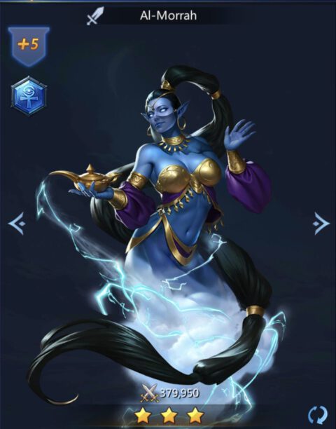 Al-Morrah is the three star hero. Her element is Water. She belongs to the Battle heroes who strengthen the Infantry during the battle.