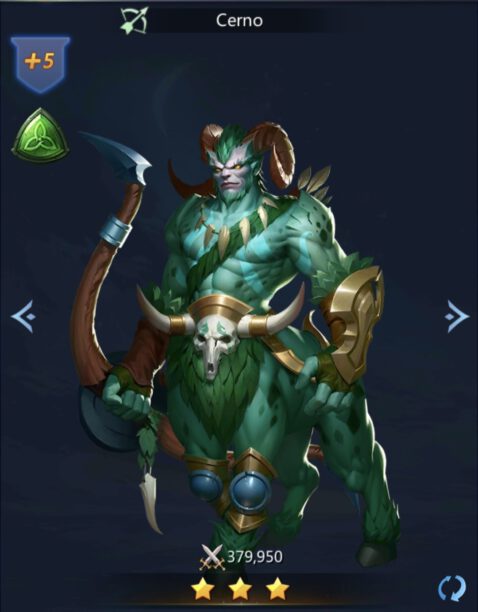 Cerno is the three star hero. His element is Air. It belongs to the Battle heroes who empower Ranged during combat.